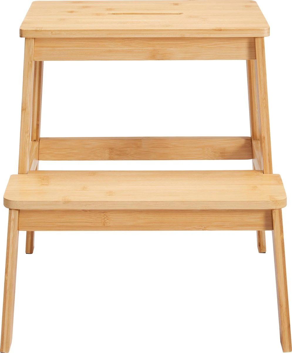 Het gebruik van hout geeft dit opstapje een naturel zicht, maar zorgt er ook voor dat deze stevig is.
