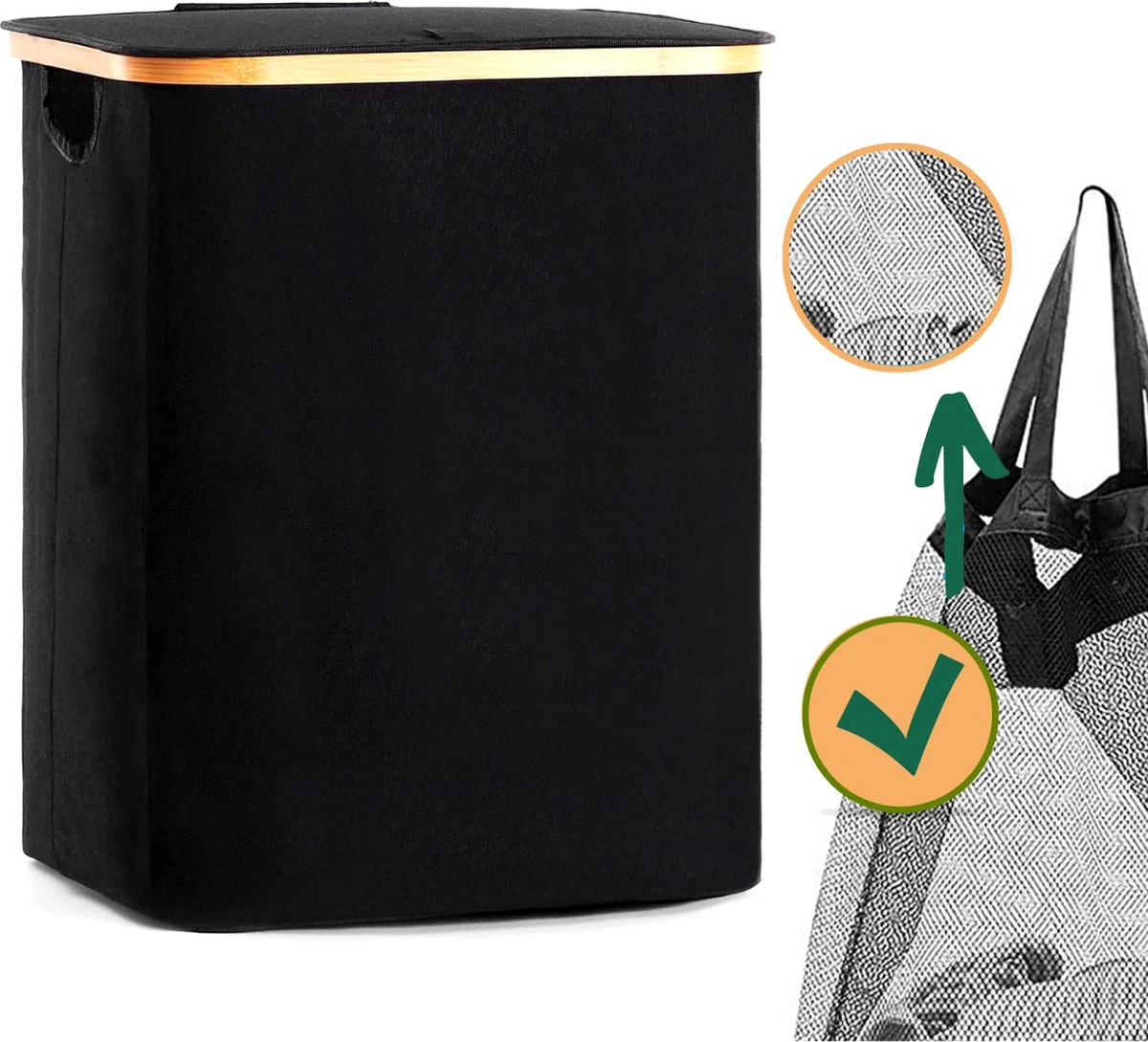 De mand beschikt over een uitneembare waszak gemaakt van polyester. Hierdoor kun je de was gemakkelijk meenemen zonder dat je de hele wasmand hoeft mee te nemen.