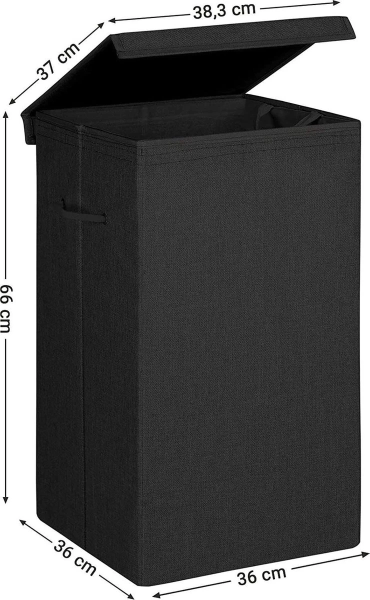 Deze wasmand heeft een capaciteit van 85L en heeft 2 katoenen handvaten. De mand heeft een deksel en heeft een verwijderbare zak met een klittenband.