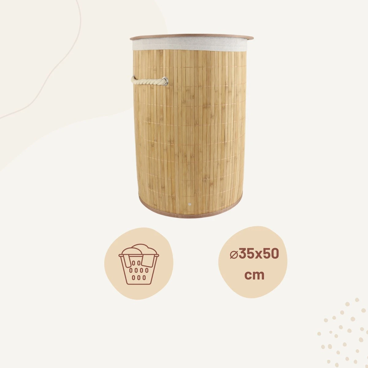 Het compacte model zorgt ervoor dat het in elke ruimte en hoek past. De wasmand is van bamboe gemaakt wat het stevigheid biedt.