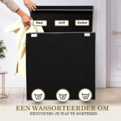 Opvouwbare Wasmand Met Deksel – Wassorteerder – Wasmanden – Wasmand Bamboe – Zwart – 60Liter
