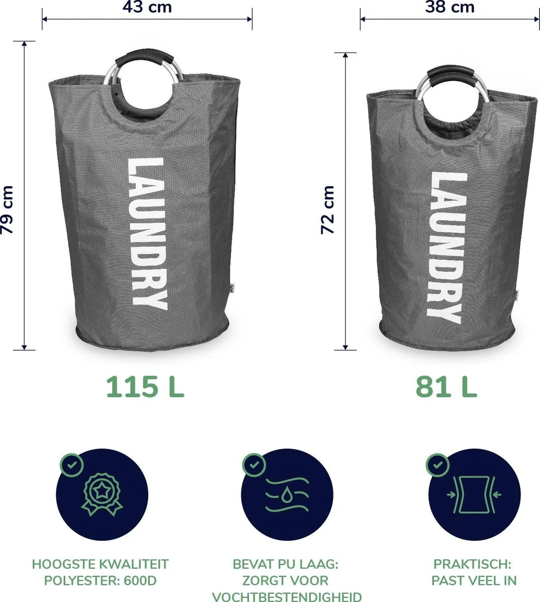Wil je een mooie wasmand kopen met een goede prijs-kwaliteitverhouding? Dan is deze Laundry waszak de beste keuze! Dankzij het stevige, duurzame polyester gaat de wasmand lang mee. De hengsels zijn gemaakt van aluminium en hebben een zachte coating. Hiermee kun je de wasmand gemakkelijk en comfortabel dragen, ook als er veel was in zit.