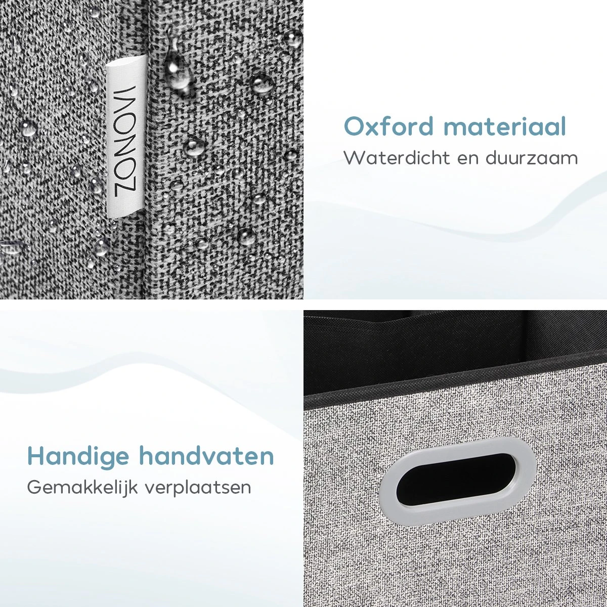 - Stevig en duurzaam – De wasmand is gemaakt van duurzaam Oxford stof. Dit is een lichtgewicht en waterdicht materiaal dat bestand is tegen beschadigingen en vuil.